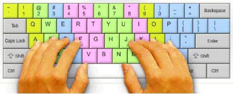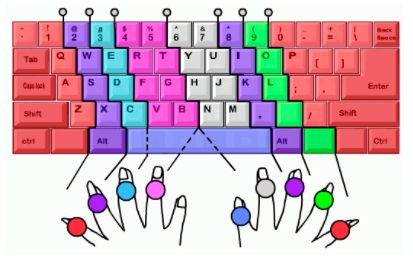 键盘左半部份由左手负责, 右半部份由右手负责。