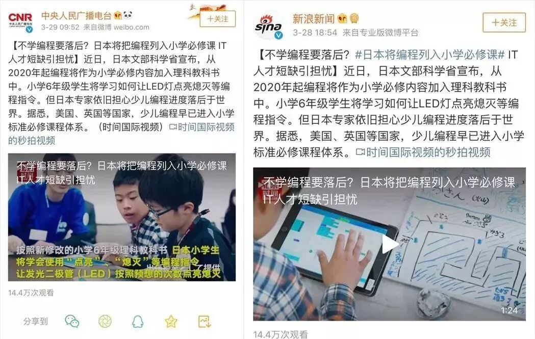 最近微博上热搜话题#日本将编程列入小学必修课#从2020年起编程将作为小学必修内容加入理科教科书中。